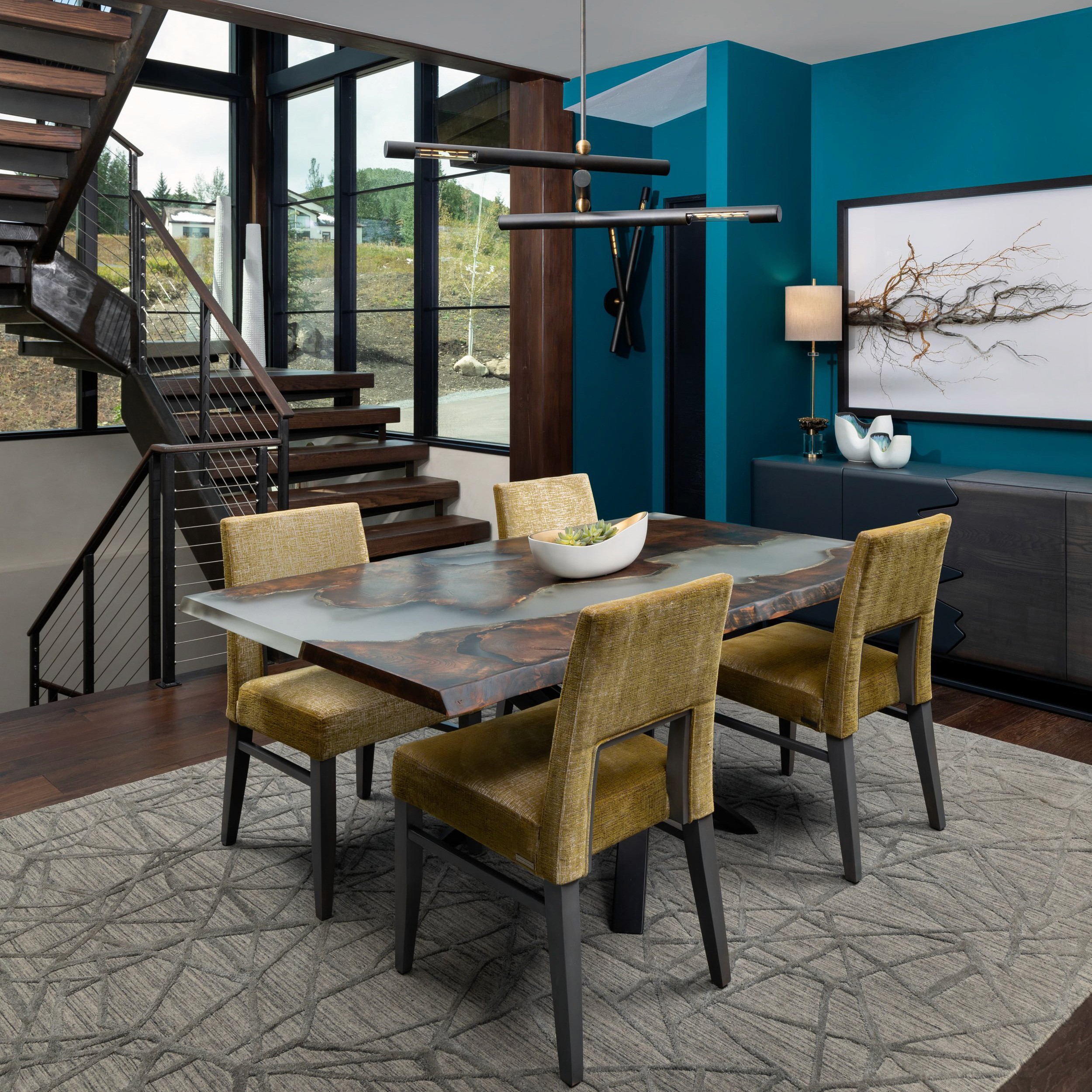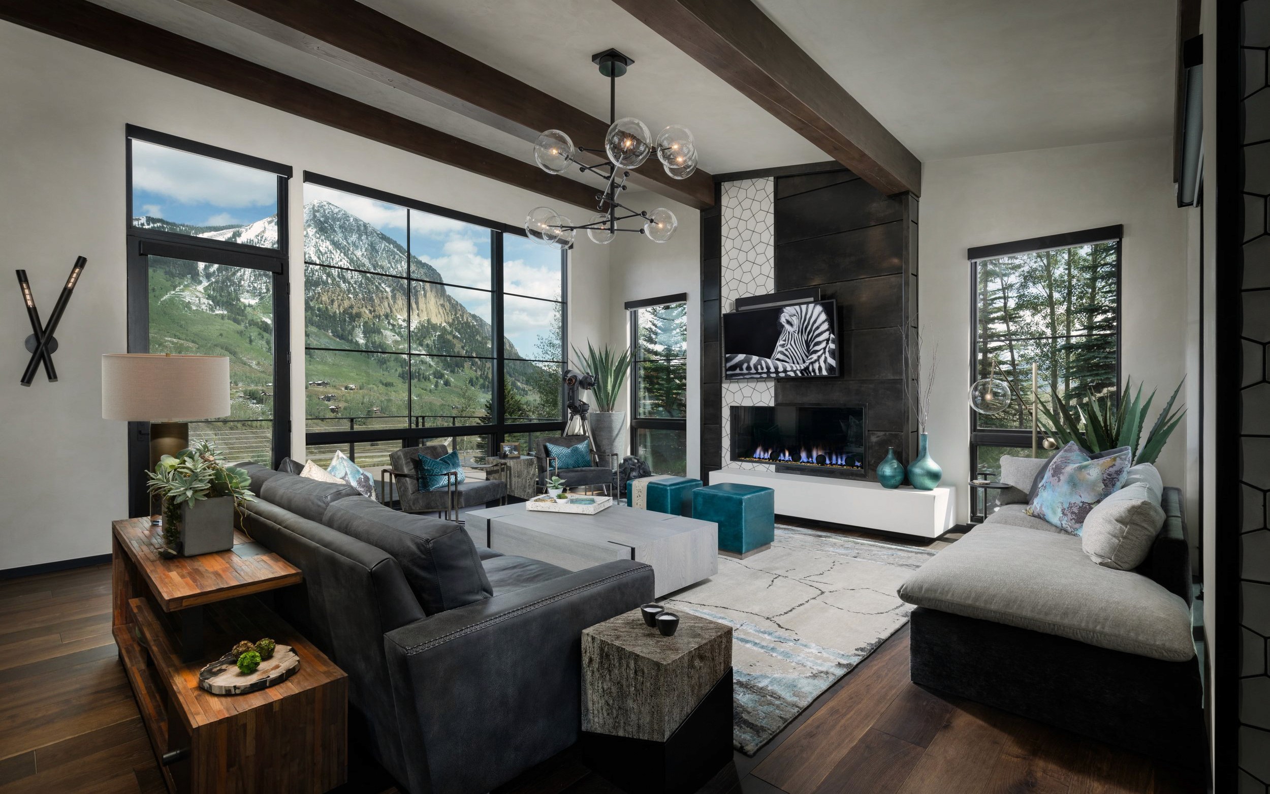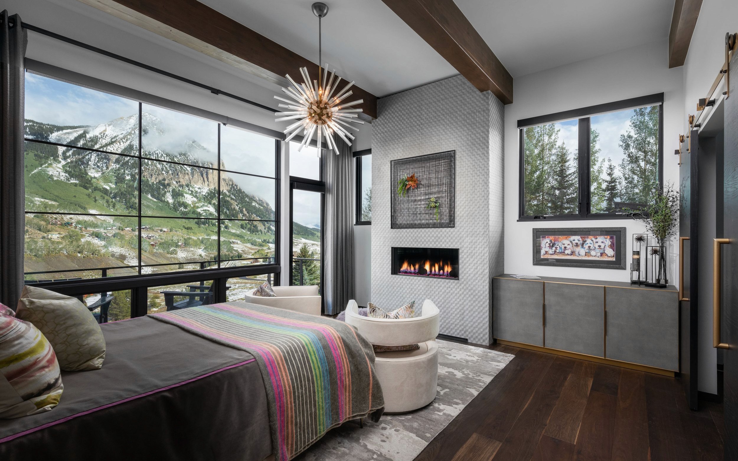 Architectural and interior photography of a custom mid-century modern home in Crested Butte, Colorado, showcasing refined architecture, highly curated interiors, and views of Mount Crested Butte.